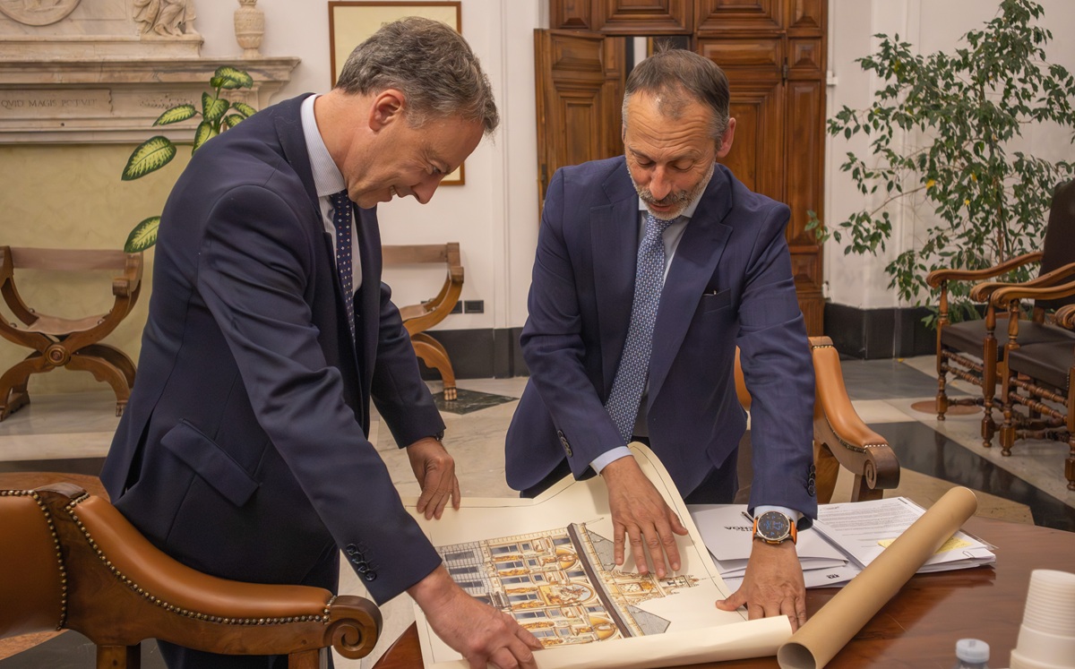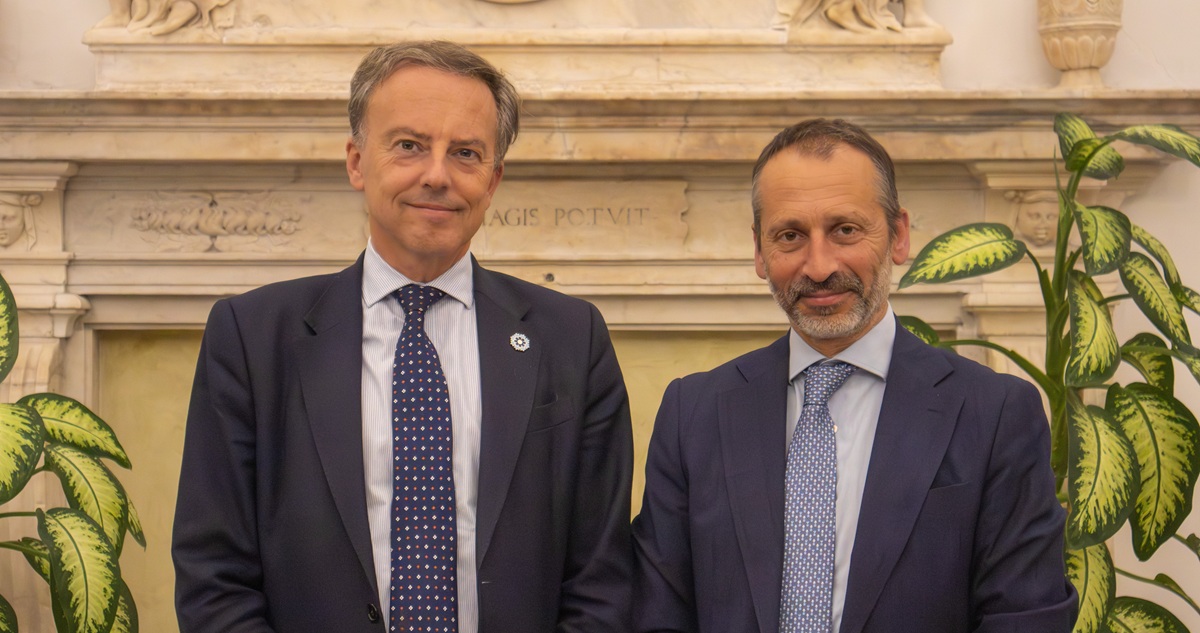 The President of the Western Ligurian Sea Port Authority, Matteo Paroli, welcomed at the historic landmark headquarters of Palazzo San Giorgio, the French Ambassador to Italy, Martin Briens, during his official visit to Genoa to commemorate the twentieth anniversary of the establishment of Alliance Française, the association promoting the long-standing cultural ties between the Ligurian capital and France.
