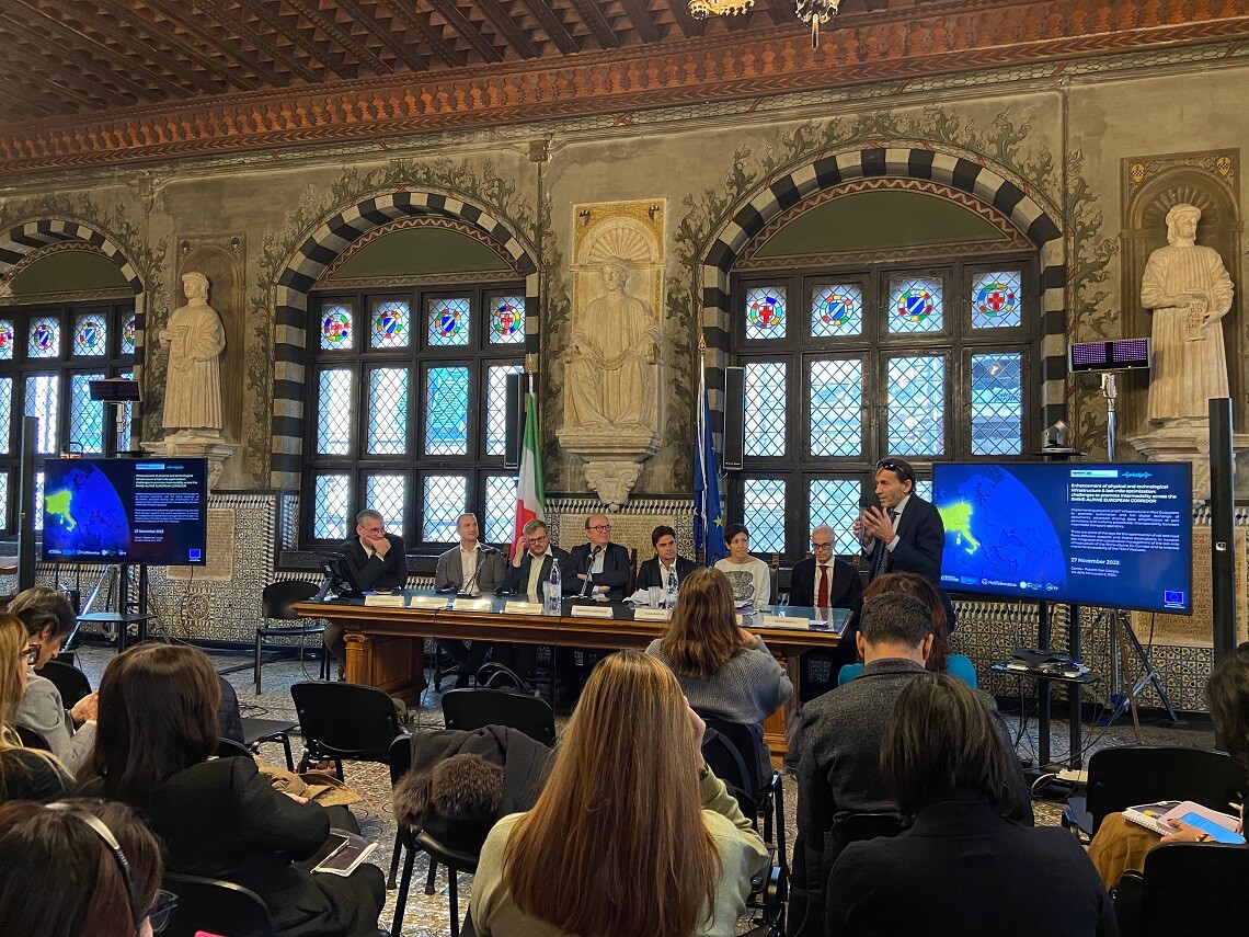 The historic headquarters of the Western Ligurian Sea Port Authority, Palazzo San Giorgio, provided the stunning backdrop to the event dedicated to the presentation of the project results of RENEW4GE and E-BRIDGE, co-funded for approximately 9 million euros by the European Union's CEF for Transport Programme, to upgrade both the tangible and intangible infrastructure of the Ports of Genoa's last-mile rail link across the development of intermodality and digitalisation.