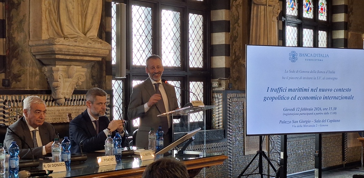 Si è svolto oggi, presso Palazzo San Giorgio, il convegno “I traffici marittimi nel nuovo contesto geopolitico ed economico internazionale”, organizzato dalla Sede di Genova della Banca d’Italia e dedicato all’analisi delle trasformazioni in atto nei traffici marittimi alla luce delle tensioni geopolitiche e dei nuovi equilibri economici globali.